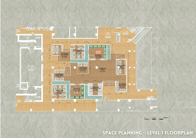 we suggested a revolving hawker stall where different local cooks will switch every now and then raise awareness to local foods culture. This was the design I suggested as a prototype/concept which had island tables for easier collaboration and other features